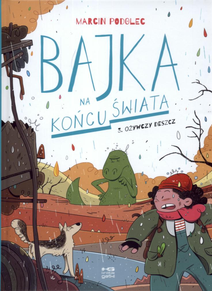 Wiktoria i Bajka wędrują, by odnaleźć rodziców. Mijają dymiące kratery, wymarłe lasy i gruzowiska. Jak okiem sięgnąć – nieprzytulne widoki. Świat po wielkim wybuchu to zdecydowanie nie miejsce dla dziewczynki i psa. Ale jeśli już mamy tam dziewczynkę i psa, pozostaje nam trzymać za nie kciuki! „Bajka na końcu świata. Ożywczy deszcz” to trzeci tom postapokaliptycznej serii dla najmłodszych autorstwa Marcina Podolca, jednego z najzdolniejszych polskich twórców komiksów i filmów animowanych. [Wydawca]